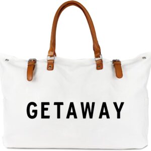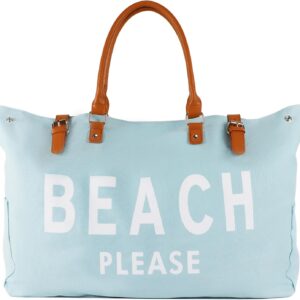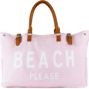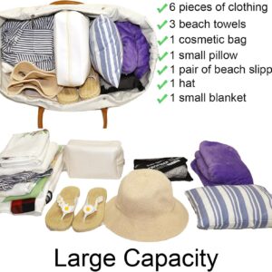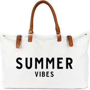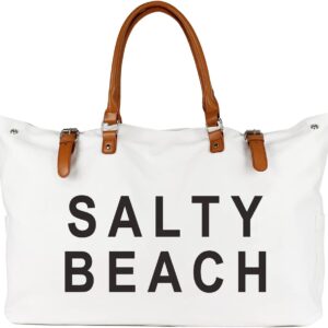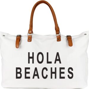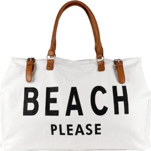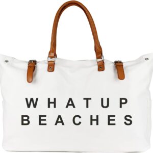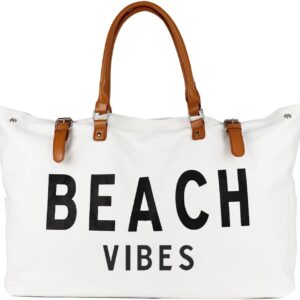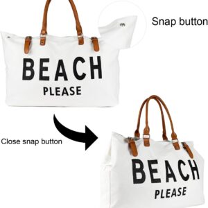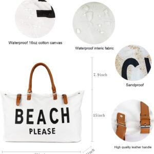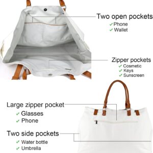 Beach Bag with Vegan Leather Handle, Extra Large Beach Bag for Women Waterproof Sandproof, White