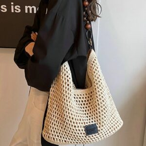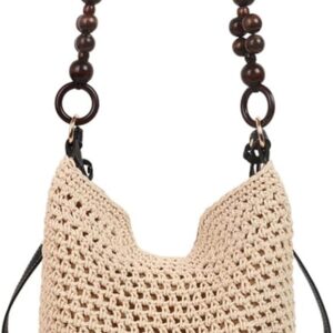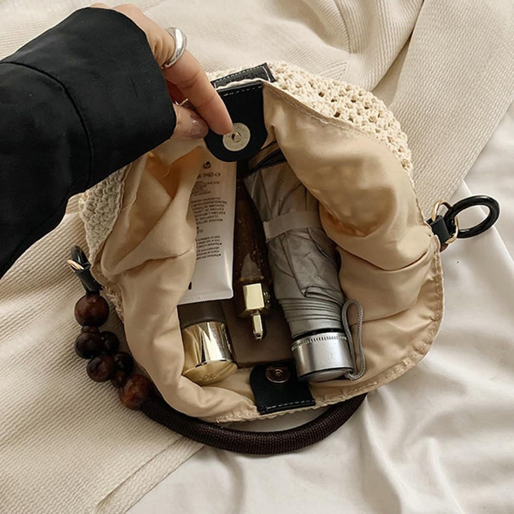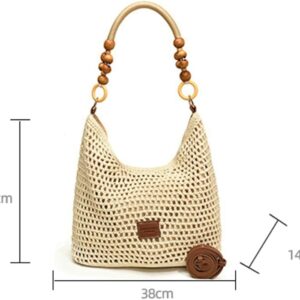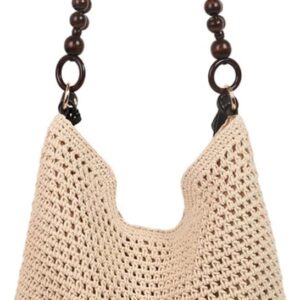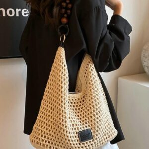 The bag is adorned with a one – of – a – kind wooden handle. Crafted from natural wood, the handle features smooth, polished beads that not only add a touch of rustic charm but also offer a comfortable grip. These wooden elements bring an earthy, artisanal feel, making the bag stand out with a unique aesthetic.
