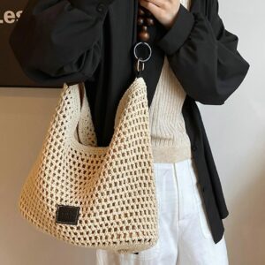This is a beautifully woven straw bag. Using high – quality straw, the intricate weaving technique creates a breathable, textured pattern. The natural beige hue of the straw gives it a summery, laid – back vibe, perfect for beach outings or casual daily looks. It showcases the timeless appeal of handcrafted straw accessories.