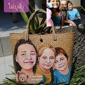 Custom, Made To your Own Order Portrait Painting Woven Straw Bags Summer Beach Tote Bag for Women 100% Handmade (A02)