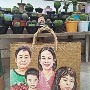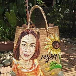 Custom, Made To your Own Order Portrait Painting Woven Straw Bags Summer Beach Tote Bag for Women 100% Handmade (A11)