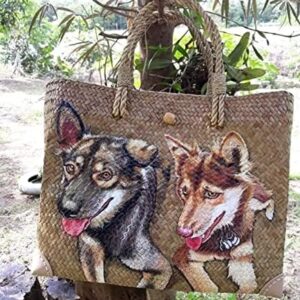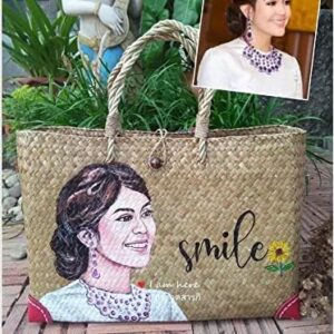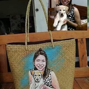 Custom, Made To your Own Order Portrait Painting Woven Straw Bags Summer Beach Tote Bag for Women 100% Handmade (A15)