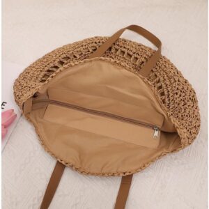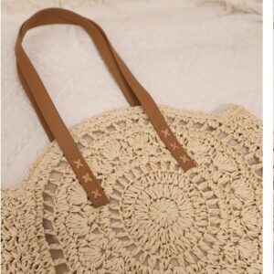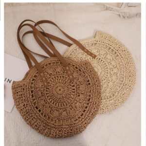 DAVBIR Bags Women Handmade Woven Basket Tote Summer Boho Beach Holiday Travel Female Shoulder Handbags,Round Hand Hollowed Straw Woven Bag