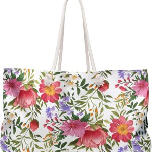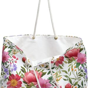Floral Summer Beach Bag for Women Vacation Travel Tote Bag Reusable Bag for Pool Picnic Shopping Bag