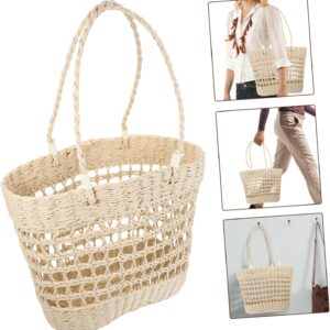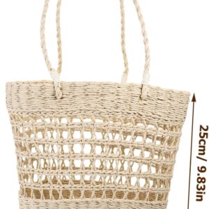 Vacation Straw Beach Bag Beach Tote Women Tote Handbags Oversized Beach Bag Large Shoulder Bag Tote Bag for Beach Trendy Tote Bag Small Beach Bag Straw Handbag Paper Rope Beige