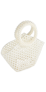 This pearl clutch is made of high quality acrylic pearls, the whole bag is handcrafted by our artisans, the pearl bag is sturdy.