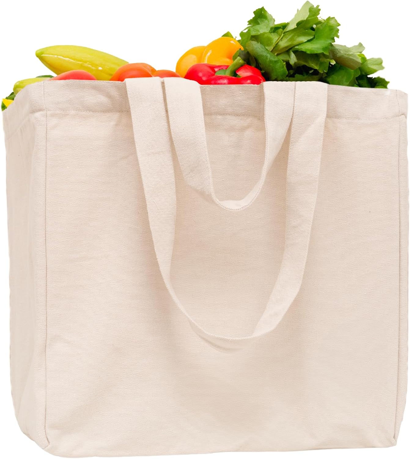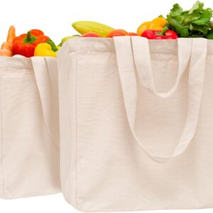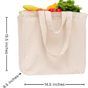 Heavy Duty Grocery Tote Bag – Extremely Sturdy Extra Large Canvas Grocery Bag with Double Handles and Real Pockets – Premium Quality, Reusable, Washable and Foldable Cotton Cloth Grocery Bag (1 Bag)