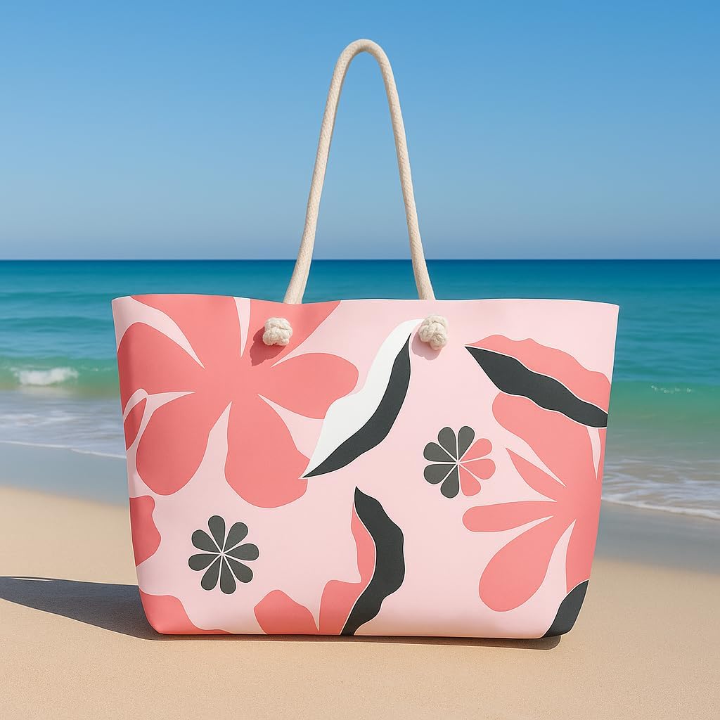 Step into summer with this vibrant floral beach tote bag, designed for sunny escapes and stylish adventures. Crafted from durable canvas, this lightweight shoulder bag features a bold pink flower print and thick nautical rope handles for a comfy, breezy carry. Whether you’re hitting the beach, heading to the pool, or exploring your favorite coastal town, this large-capacity bag has room for all your must-haves – from towels to flip-flops. Add a pop of color and personality to your summer style with this must-have accessory.