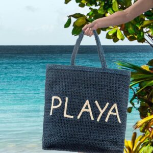 Embrace the effortless style of summer with the Playa Embroidered Jute Large Beach Tote. This navy blue woven carryall is more than just a bag; it’s your passport to carefree beach days. The spacious interior easily accommodates all your essentials, while the beautiful embroidery adds a touch of sophisticated charm. Durable and lightweight, this tote is the perfect companion for sunny adventures, ensuring you’re stylishly prepared for everything from sunbathing to sunset cocktails. Its relaxed yet refined aesthetic makes it ideal for the beach, the boardwalk, or even a casual day out.