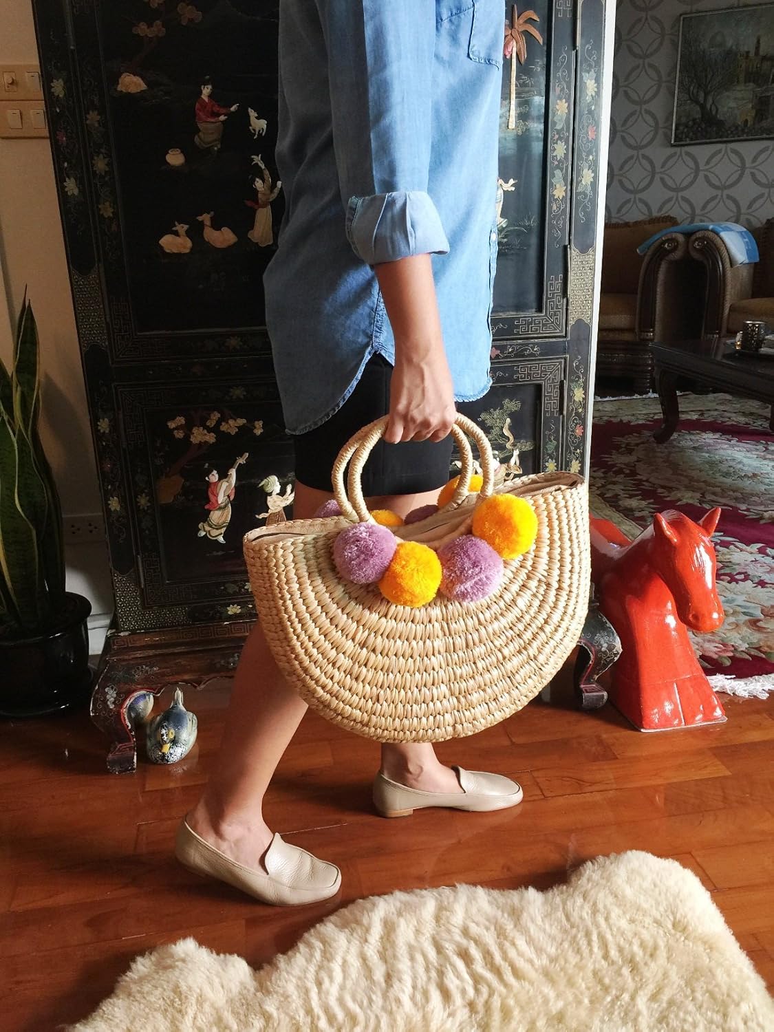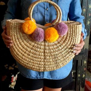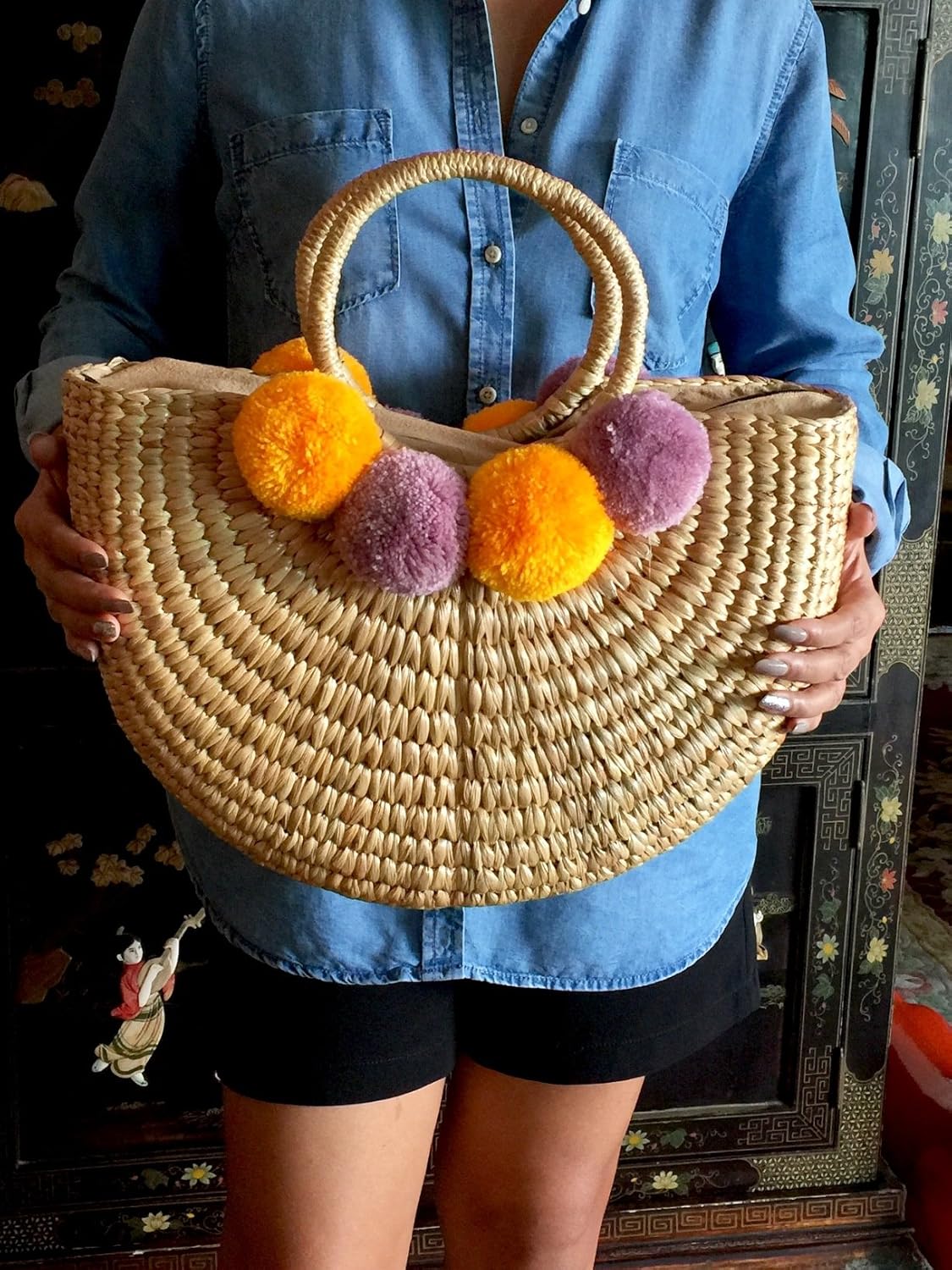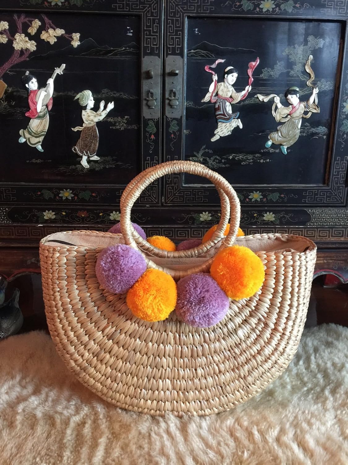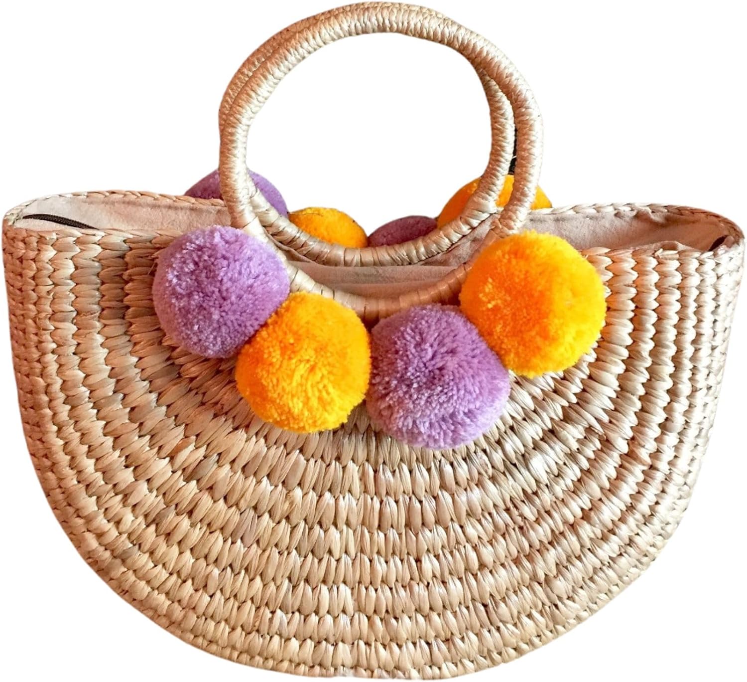 Pom Pom Straw Bag, Pom Pom Straw Bags for Women, Straw Basket Bag,Straw Basket Tote Bag,Beach Basket Bag,Pom Pom Straw Beach Bag,Basket Bag,Straw Bag,Straw Tote Beach Bag,Summer Straw Bag,Straw Tote
