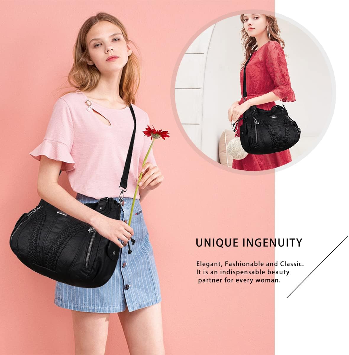 Purses and Handbags Women Fashion Tote Bag Shoulder Bags Top Handle Satchel Purses Washed Synthetic Leather Handbag