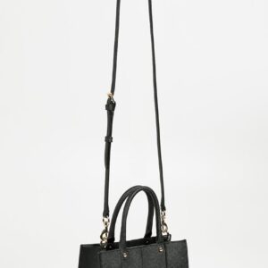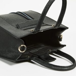 - Top-handle bag in crosshatched genuine leather featuring exaggerated zipper pull and adjustable/removable cross-body strap