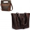 S-ZONE Leather Tote Bag Large Purse for Women with Small Leather Crossbody Bag Vintage Shoulder Purse