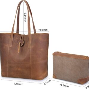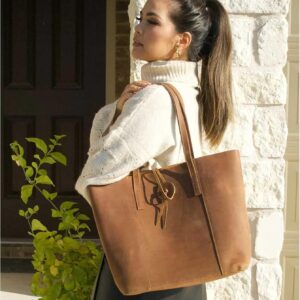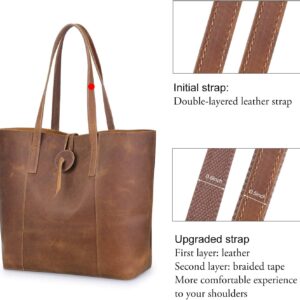 - Upgraded Version: The tote bag is made of durable Cowhide Crazy Horse Leather (Genuine Leather). It will be more glossy after about half year of using. We have UPGRADED the Workmanship of Double Top Handles, so it won’t shed black threads from the handles. The new version with the first leather layer and the second braided tape is more comfortable for you to carry