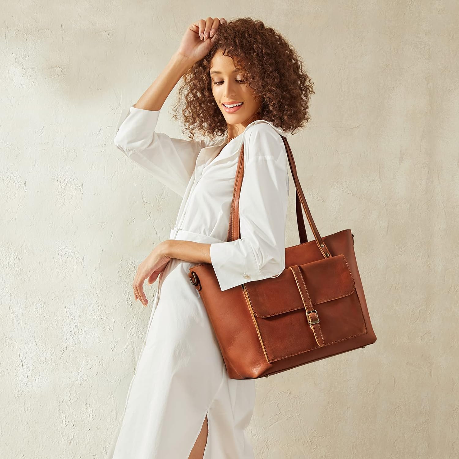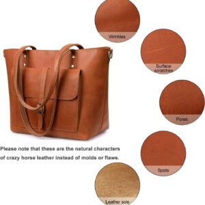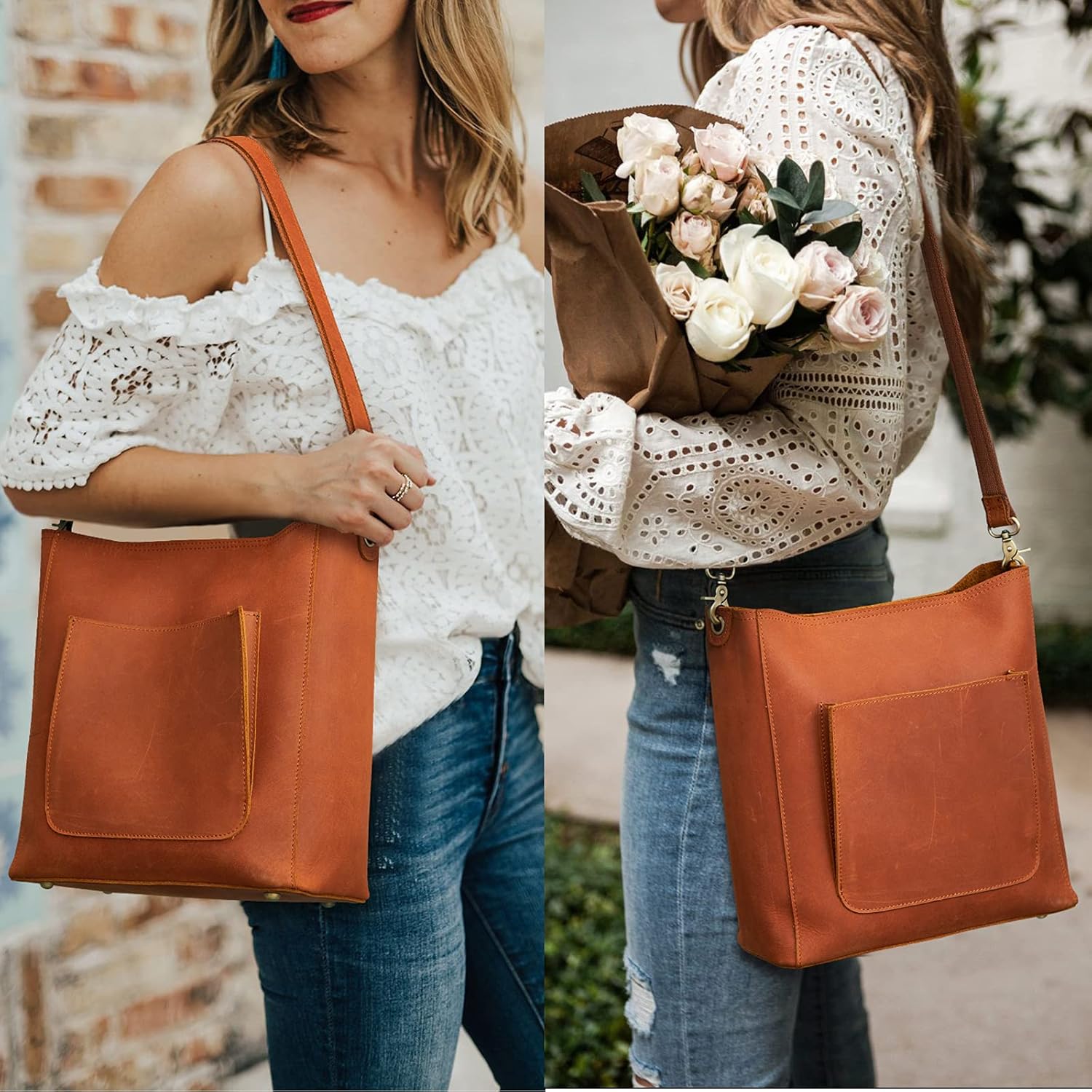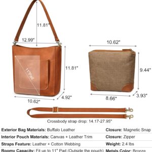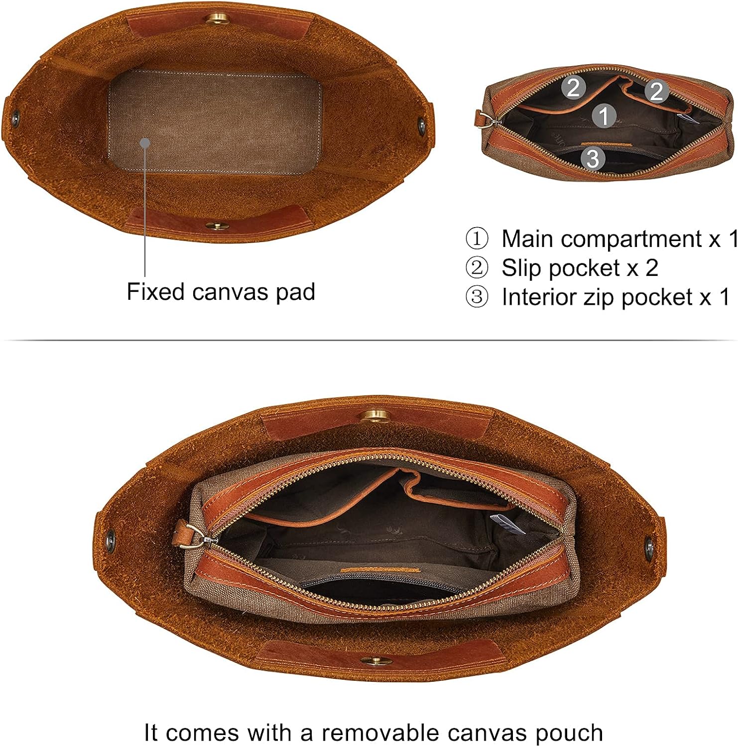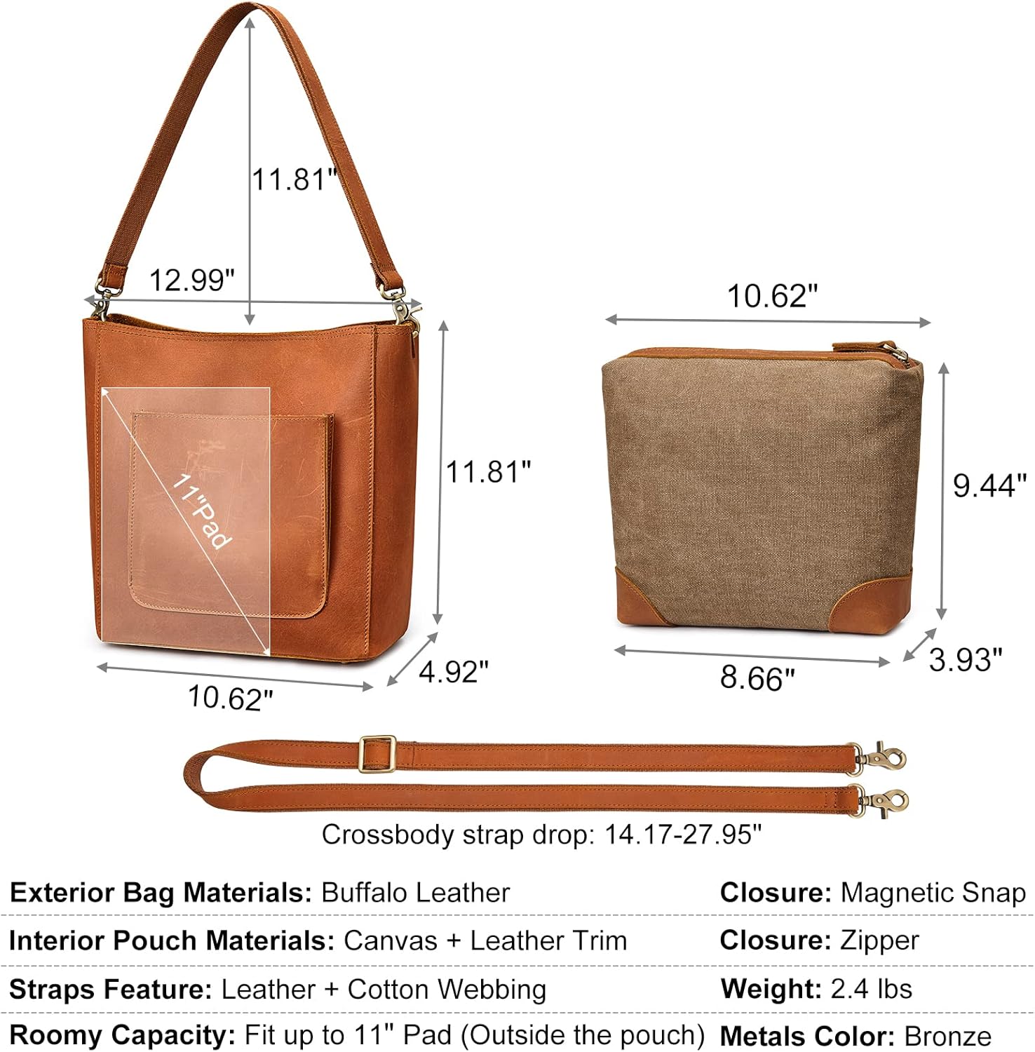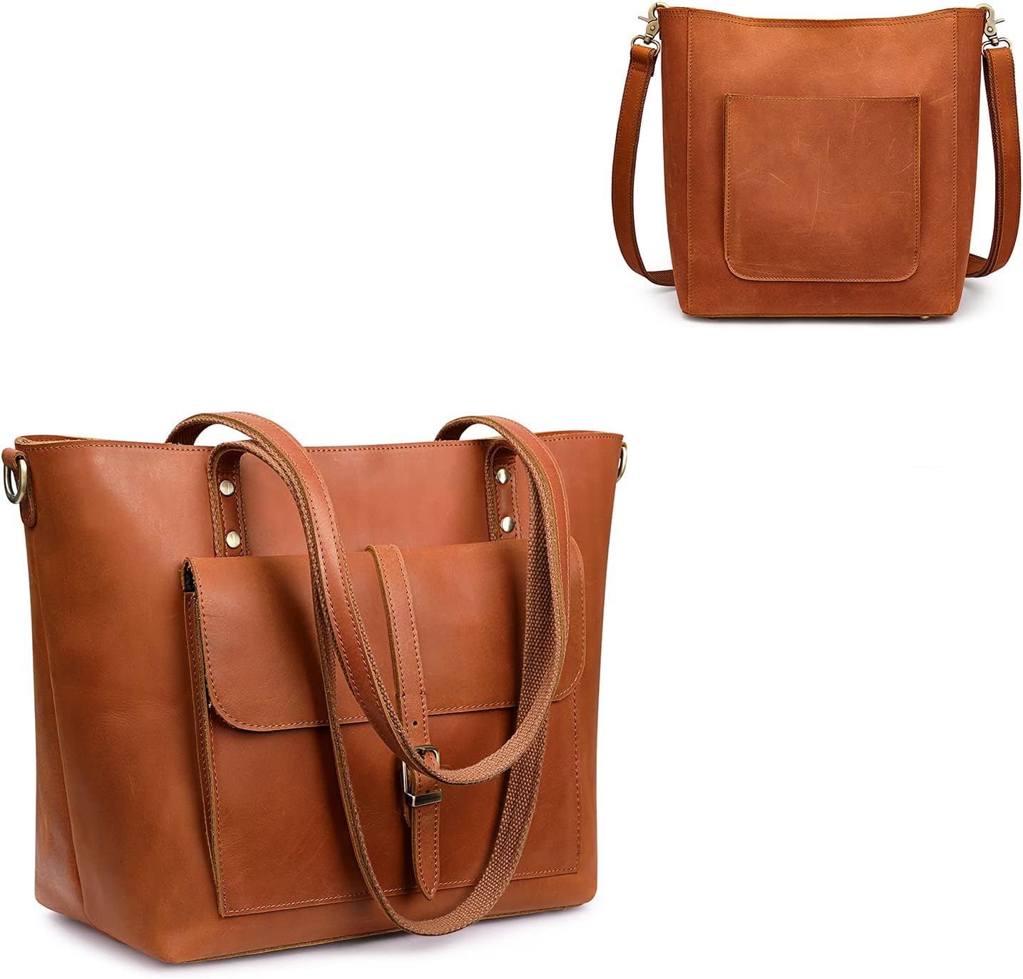 S-ZONE Women Genuine Leather Tote Bag Shoulder Handbag Bundle with Bucket Crossbody Purse