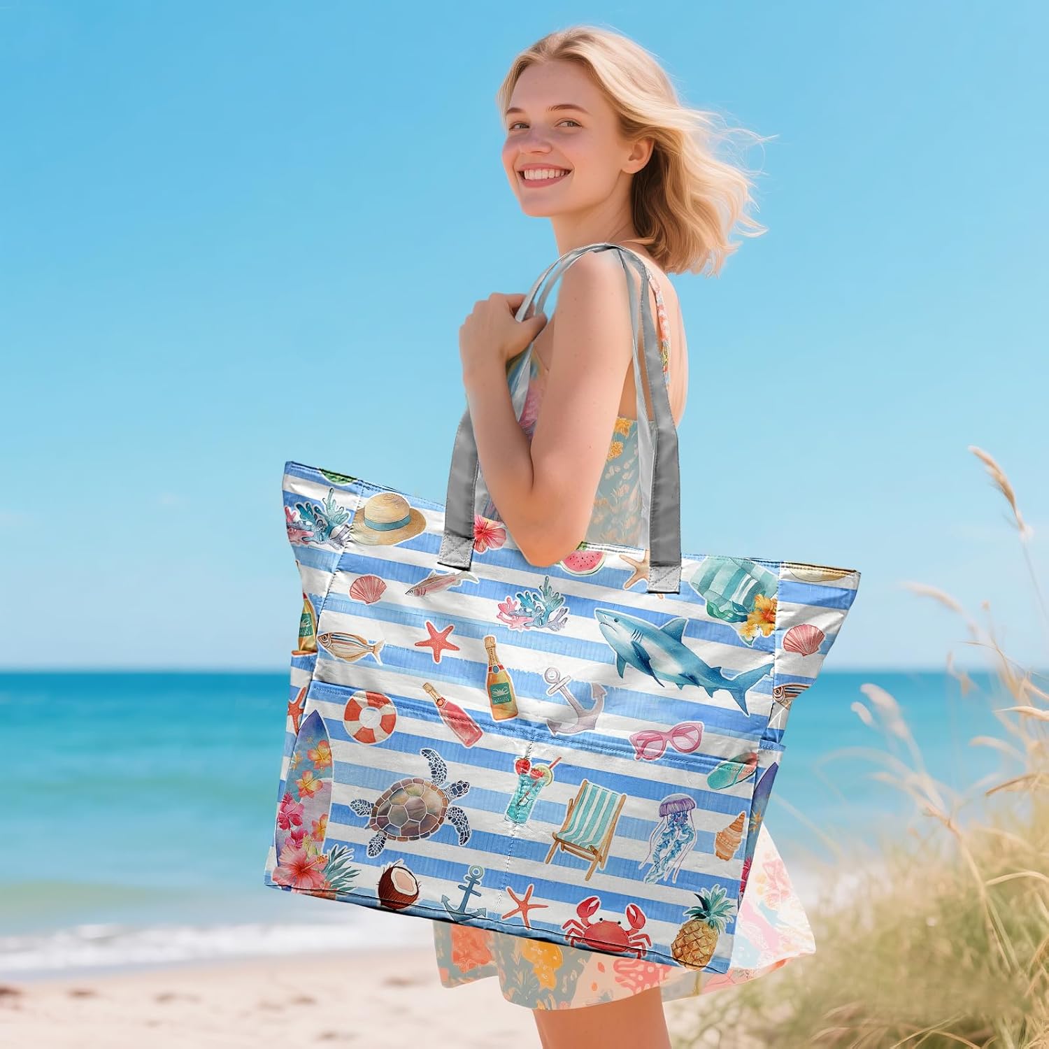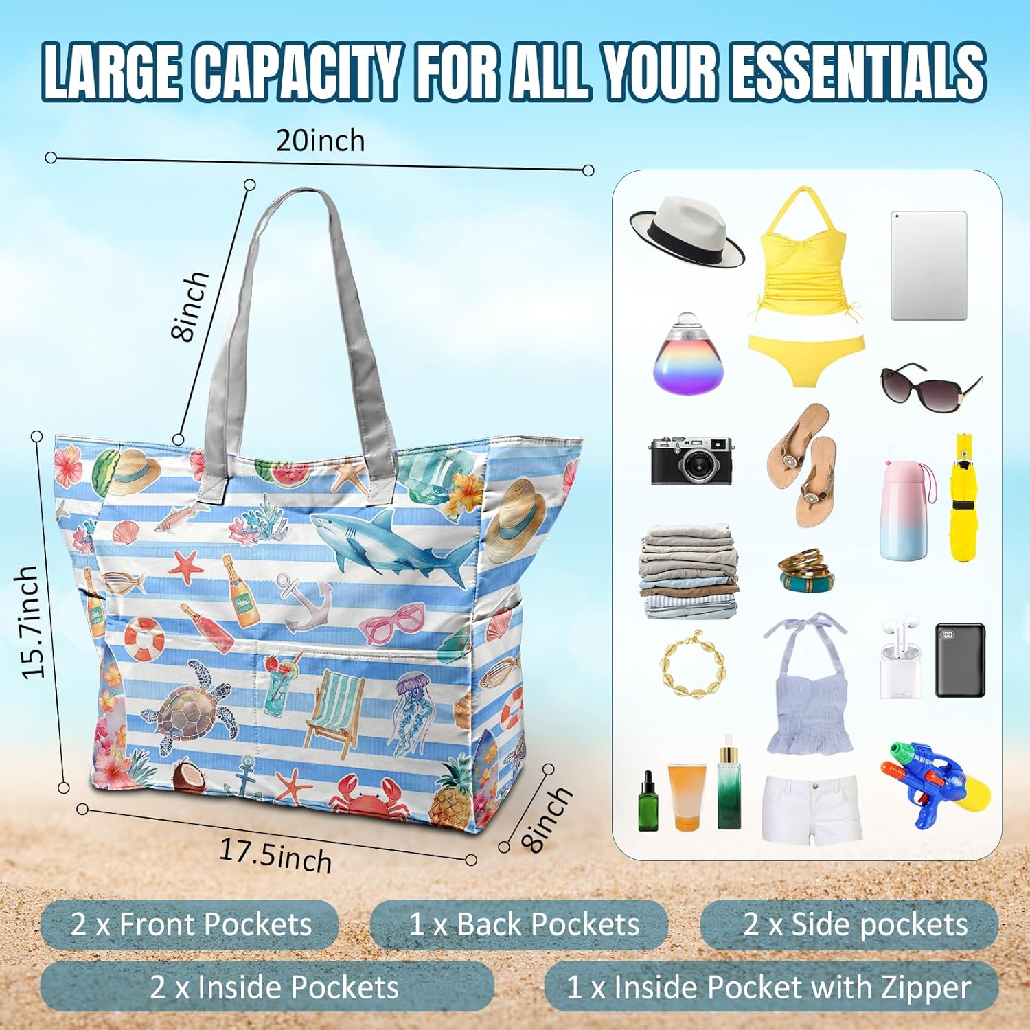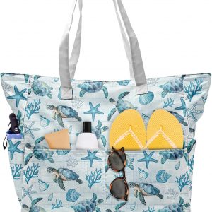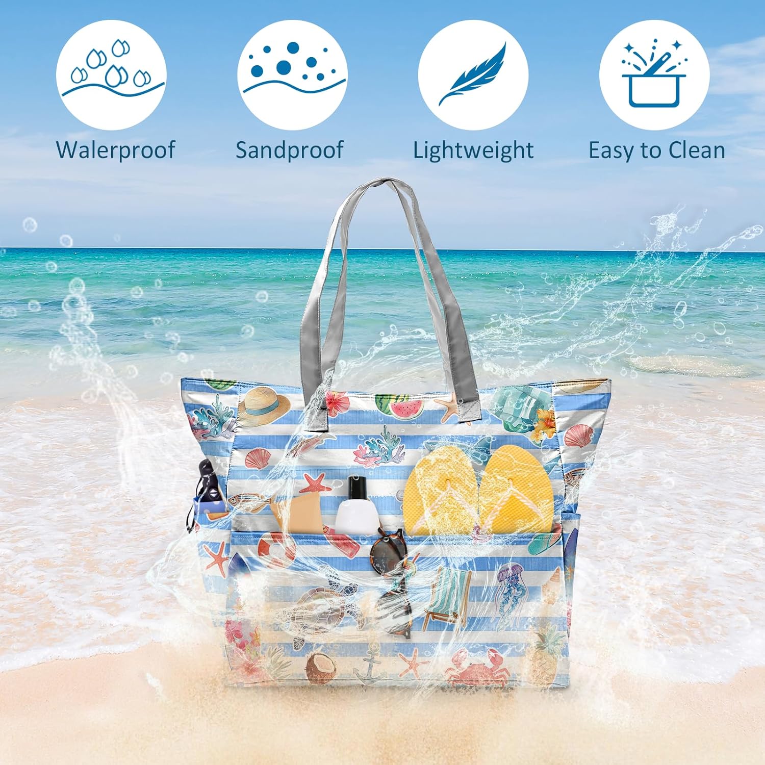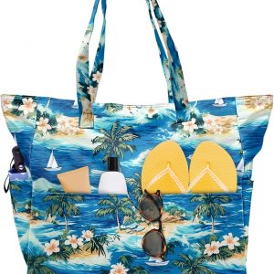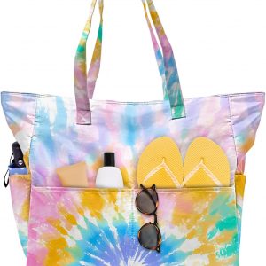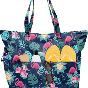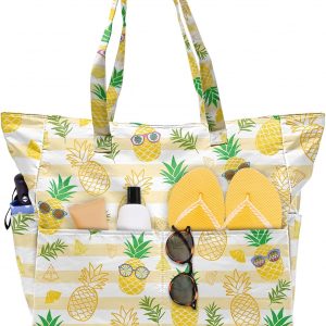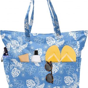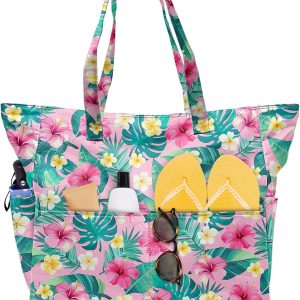 SIOQCKIS Large Beach Bag Waterproof Sandproof Beach Bags for Women Pool Tote Bags with Zipper Summer Swim Bag Foldable