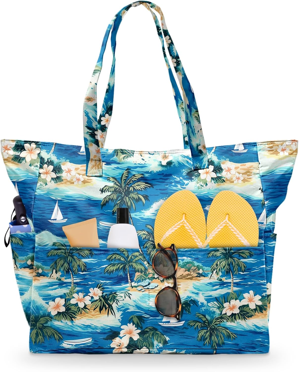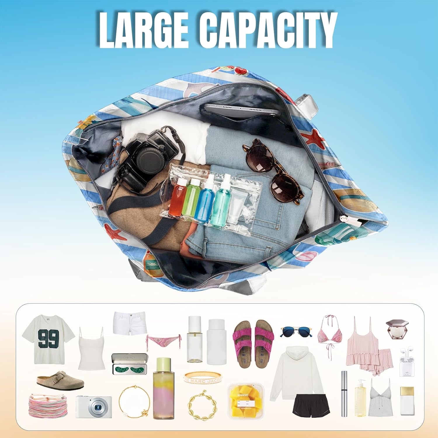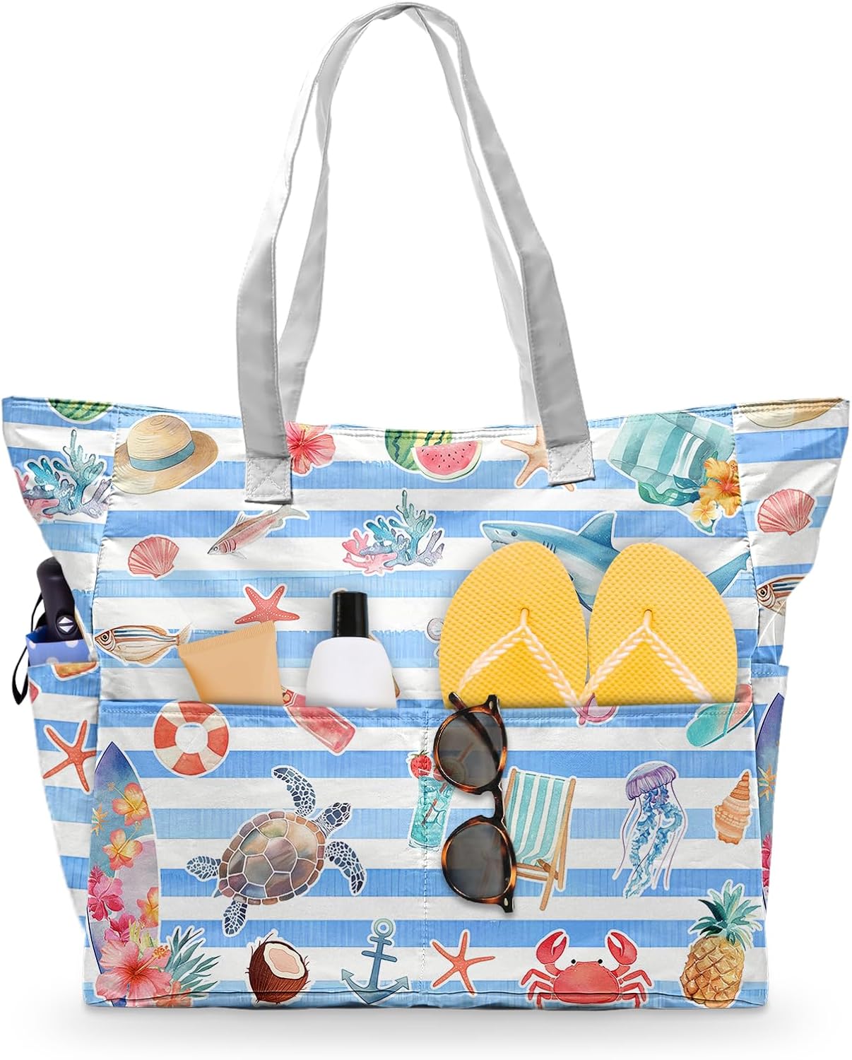SIOQCKIS Large Beach Bag Waterproof Sandproof Beach Bags for Women Pool Tote Bags with Zipper Summer Swim Bag Foldable