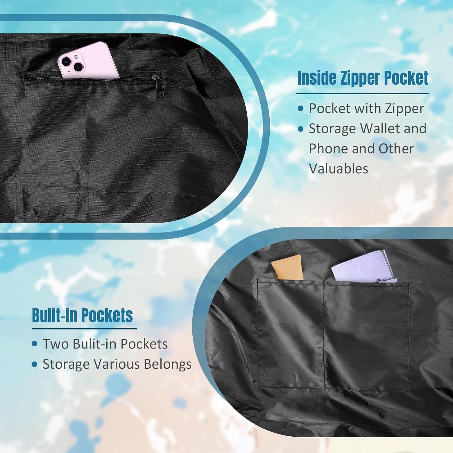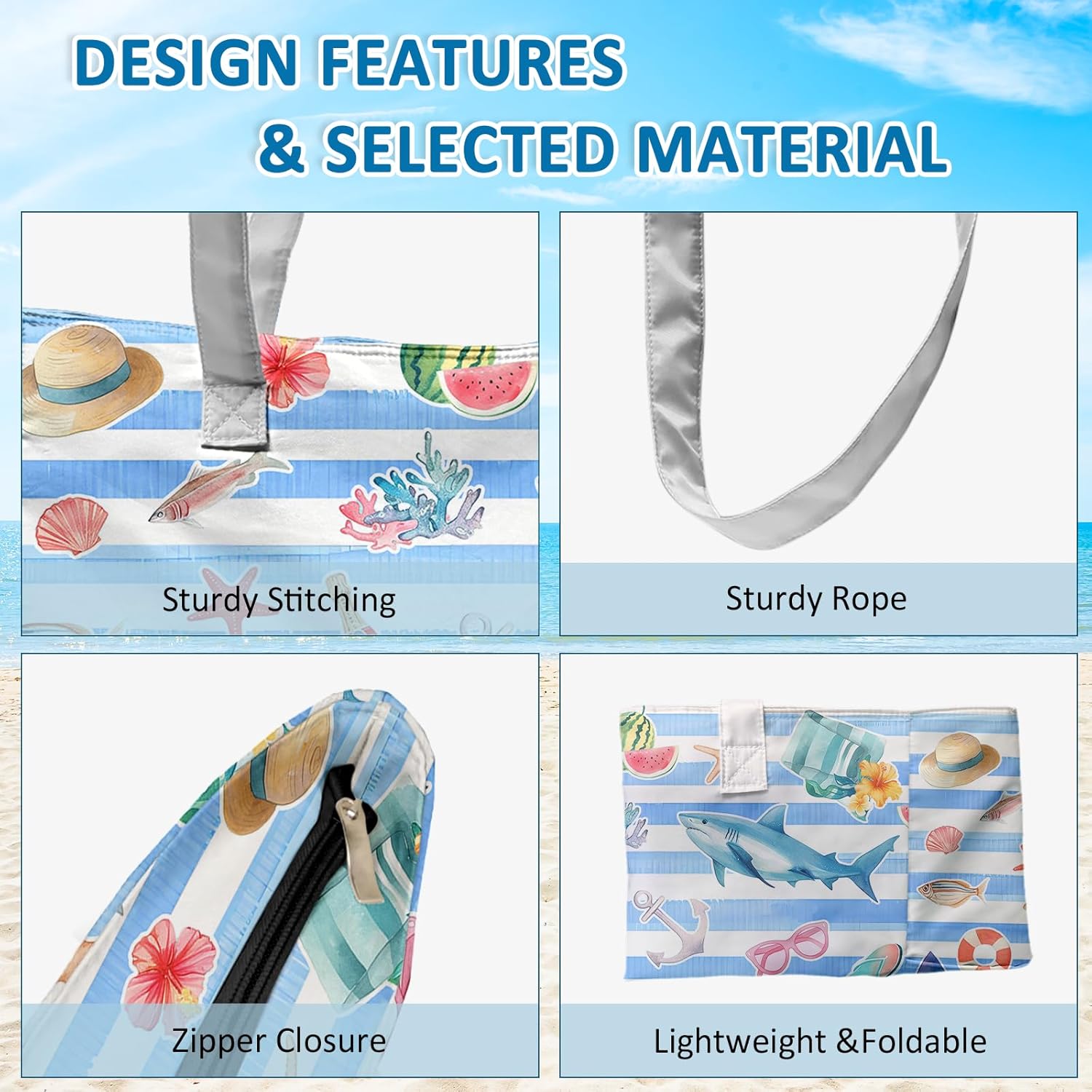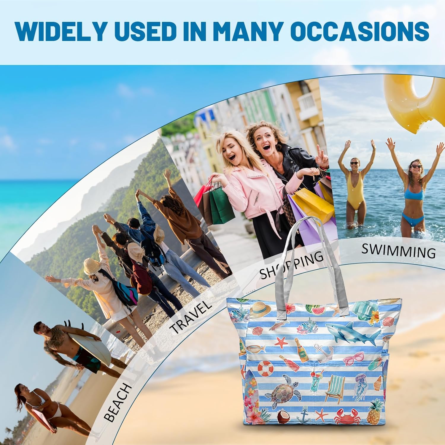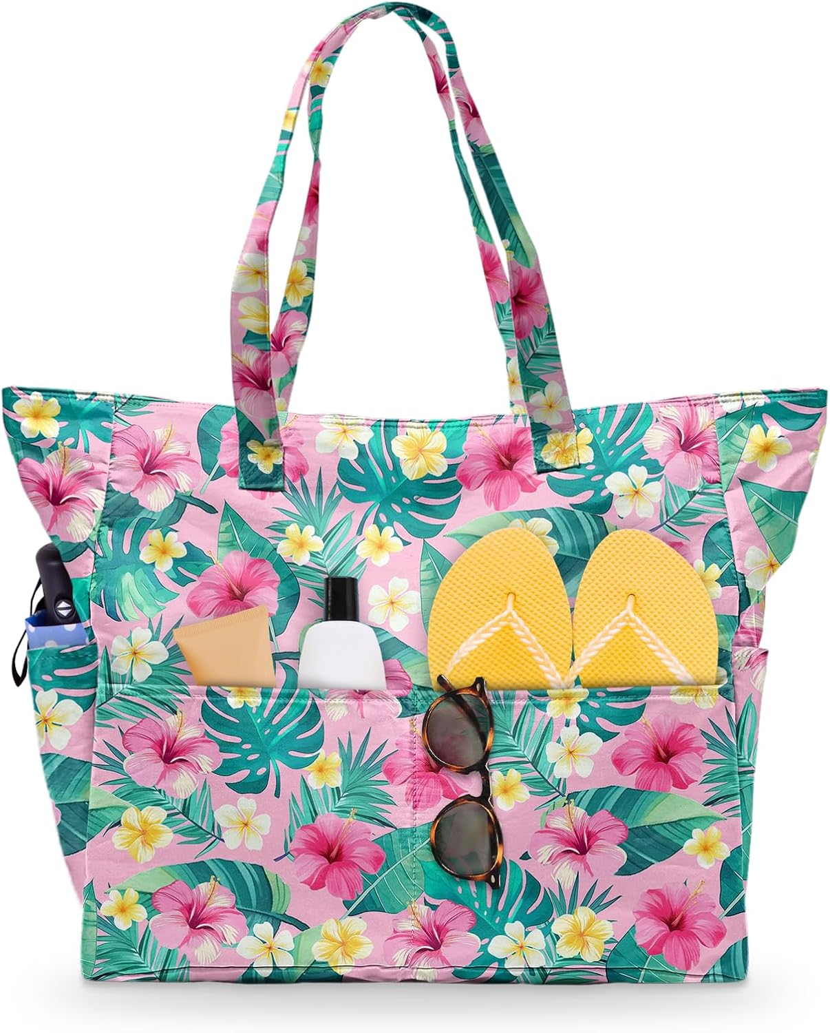 SIOQCKIS Large Beach Bag Waterproof Sandproof Beach Bags for Women Pool Tote Bags with Zipper Summer Swim Bag Foldable