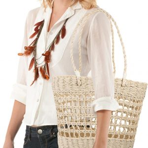 – Material:Paper string beach tote bag