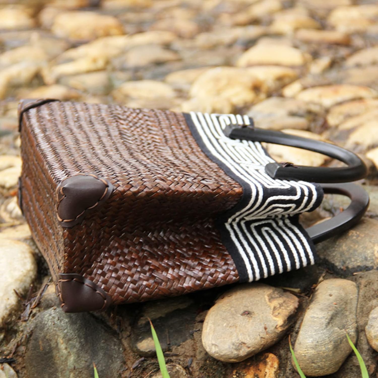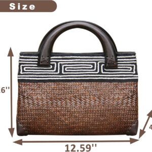 - 【Size】Beach Bag Size:12.59”x8.26”x4.3”。the handmade bamboo bag can store sunglasses, keys, cosmetic bags, wallets and other items that you need for your daily outings, large-capacity fully enclosed professionals make these Bags store items safely without worrying about losing them