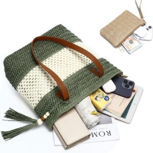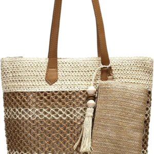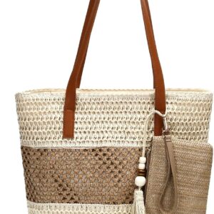 tutuebobe Beach Straw Bags for Women, Summer Travel Bag Woven Straw Purse, Handmade Clutch Beach Tote Bag Shoulder Handbags