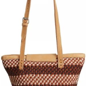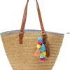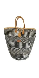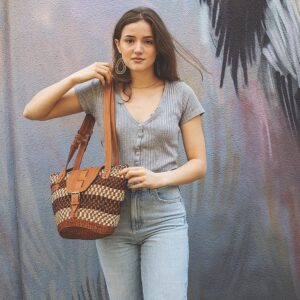 Waves on Earth Handmade Sisal Straw Tote Bag, Lightweight Market Basket with Leather Strap Handles and Button Closure, Large Straw Purse for Travel, Handmade Summer Beach Lifestyle Tote Handbag