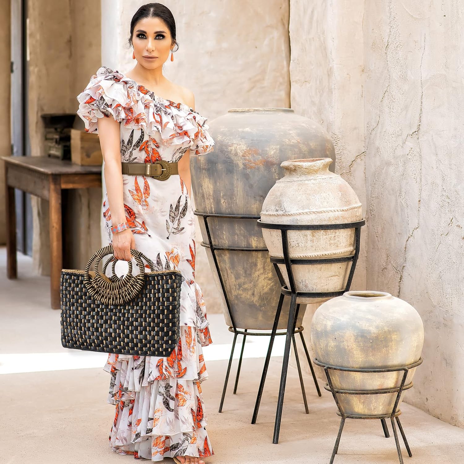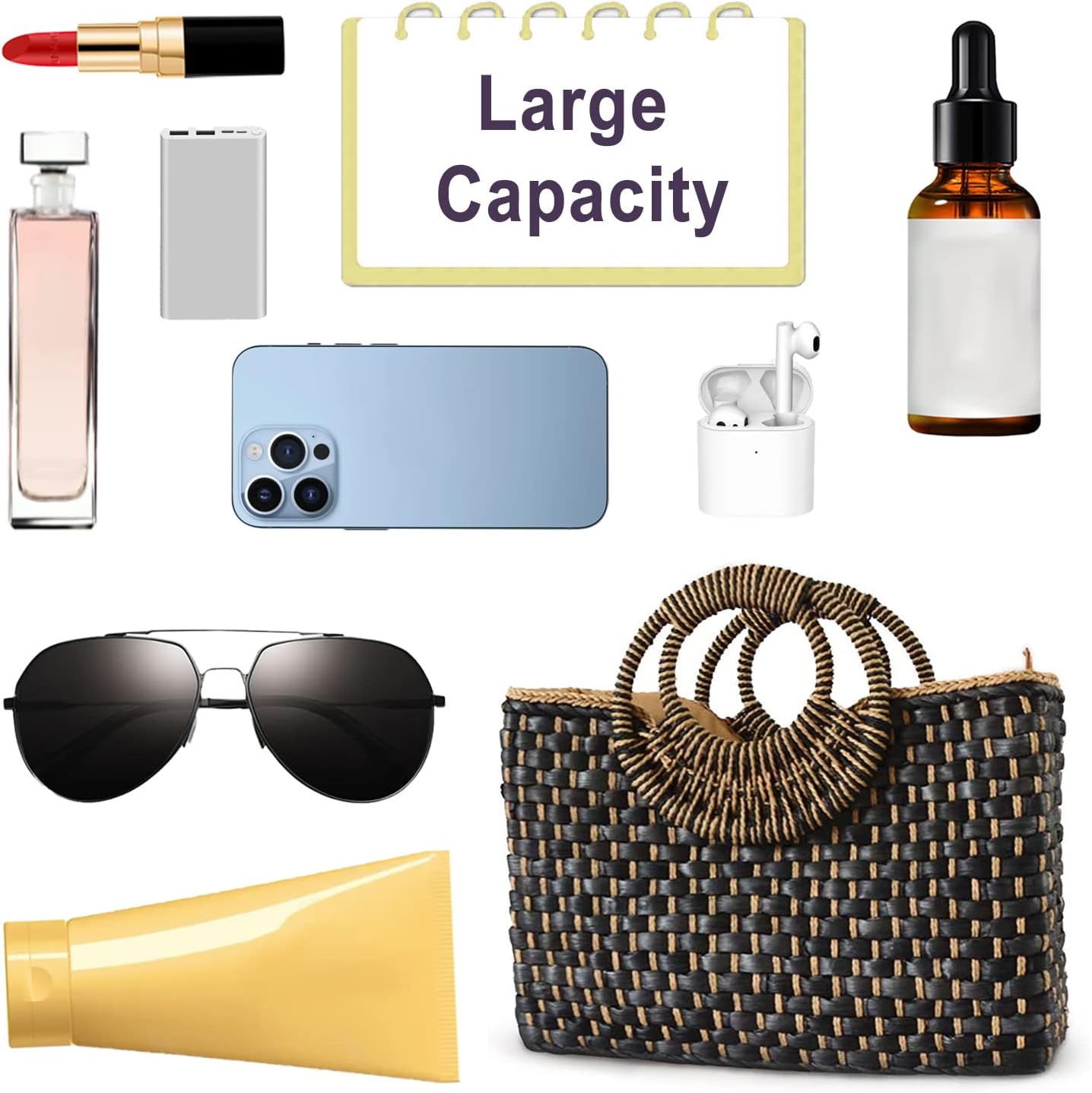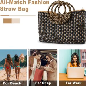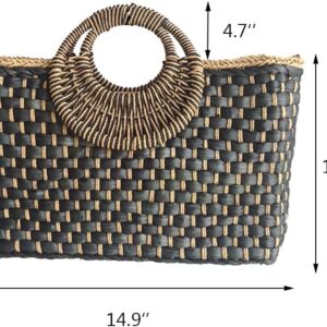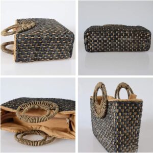 Women Straw Bag Beach Handbag Tote Bag Black
