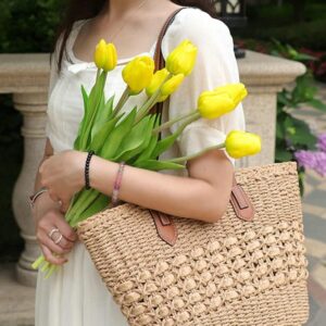 - ersatile, simple and fashionable straw woven bags, large capacity single shoulder paper rope woven bags, vintage beach bags. This is the best gift for the person you love.