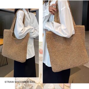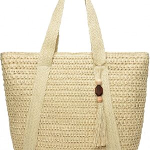 Straw Beach Bags for Women Woven Beach Tote Bag Shoulder Handbag with Tassels