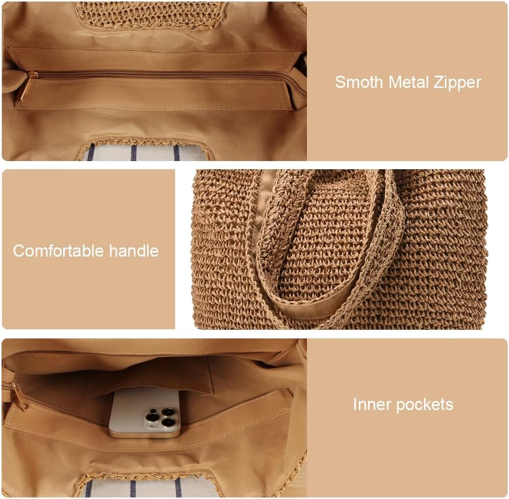 High Quality Shoulder Bag:This collapsible beach bag Made of straw, this beach tote bag is lighter and carries no load.Soft beach bag is easy to fold and store without taking up space.