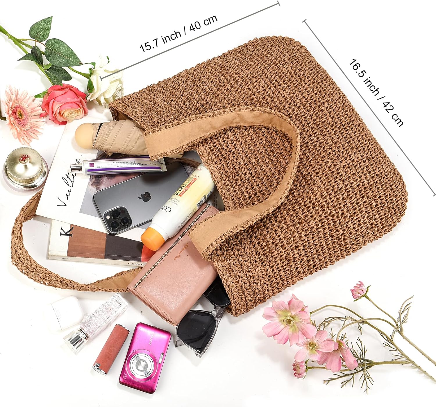Beach Purse for Women Vacation: Straw beach bag is more than a beach bag and fit many occasions such as swimming pool, gym, , camping, picnic, family days, and grocery purchasing, and eventually evolved into a use-for-almost anything bag!The essential beach tote bag for the whole family vacation.