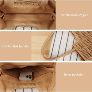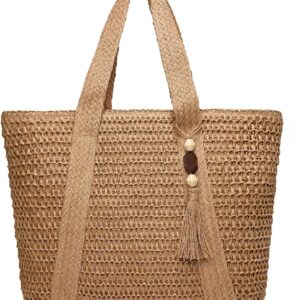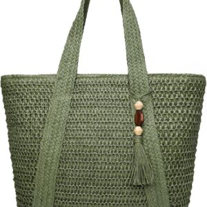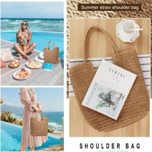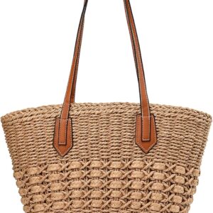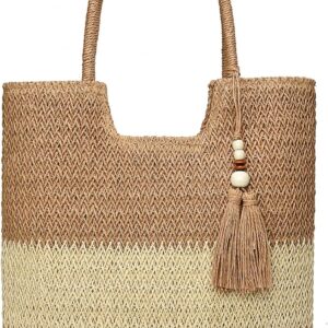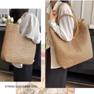 YAVCOOL Straw Beach Bags for Women Woven Beach Tote Bag Casual Boho Large Shoulder Handbags Purse for Vacation Holiday